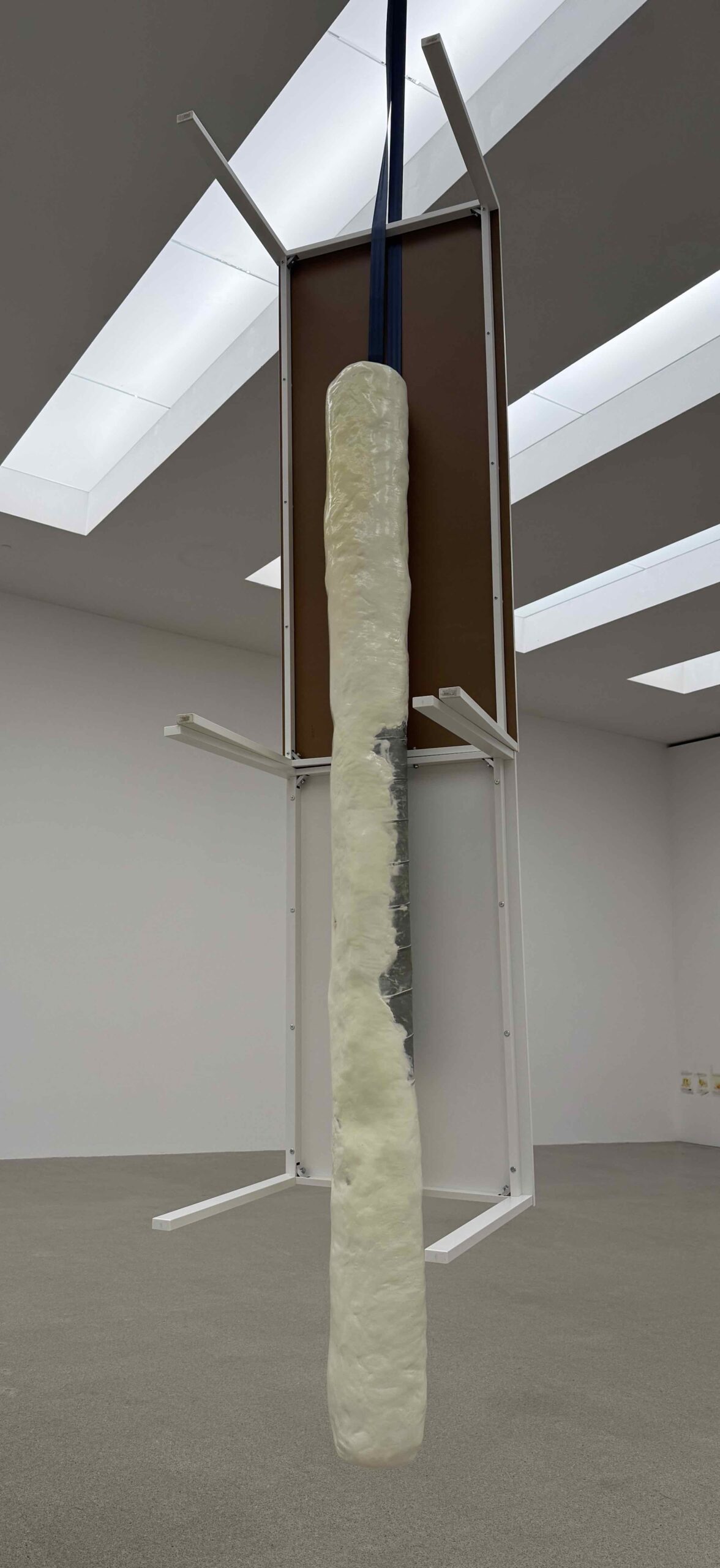 Parallel zu diesem narrativen Teil seines Werkes, schafft de Quillaq formal reduzierte, aber keineswegs kleine Skulpturen, die meist Röhrenform haben und somit den Penis des Körper-Kapitels mitnehmen, aber auch ganz einfach als Stossrichtung gelesen werden können, wobei unklar ist, welche Richtung obsiegt! Es ist die Materialzusammensetzung, die einem stutzen lässt, denn das Harz soll, gemäss Etikette, mit Urin und Viagra bestrichen sein, was als glänzender «Lack» erkennbar ist.