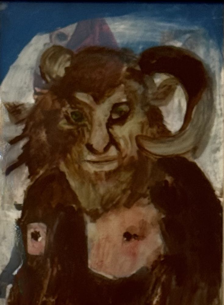 Es ist als hätte die Ausstellung von Augustin Rebetez im Aargauer Kunsthaus 2023 den Tarif für grosse Retrospektiven von Schweizer Kunstschaffenden im (heimlichen) Schweizer Nationalmuseum durchgegeben. Denn auch «Vorhang fällt, Hund bellt» von KLODIN ERB (*1963) ist ein einziges Feuerwerk! Allerdings musste ich auch hier (liegt wohl auch an meinem Alter) zweimal hinfahren, um die Fülle zu einer Komposition zu fügen. Nach der Vernissage schüttelte ich den Kopf: Diese Hektik! Ich wusste nicht wie ich die ständigen Wechsel der Stile, der Themen zu einem Stück fügen sollte. Es war mir als würde Mephisto, den ich schon im Eingang als «me and the other» entdeckt hatte, die Künstlerin dauernd jagen. (Bild). Dabei begegnete ich dem Werk von Klodin Erb beileibe nicht zum ersten Mal. Sie fiel mir schon 1998 in Markus Stegmanns «Gewebeprobe» im Museum Allerheiligen in Schaffhausen auf und seither habe ich ihr Schaffen kontinuierlich verfolgt. Unvergessen, die «Wolfslaterne» in der Salle Poma des Kunsthaus Pasquart 2018! Oder die geradezu eine Wahlverwandtschaft evozierende Dialog-Ausstellung im kleinen Museum Helen Dahm in Oetwil 2022.