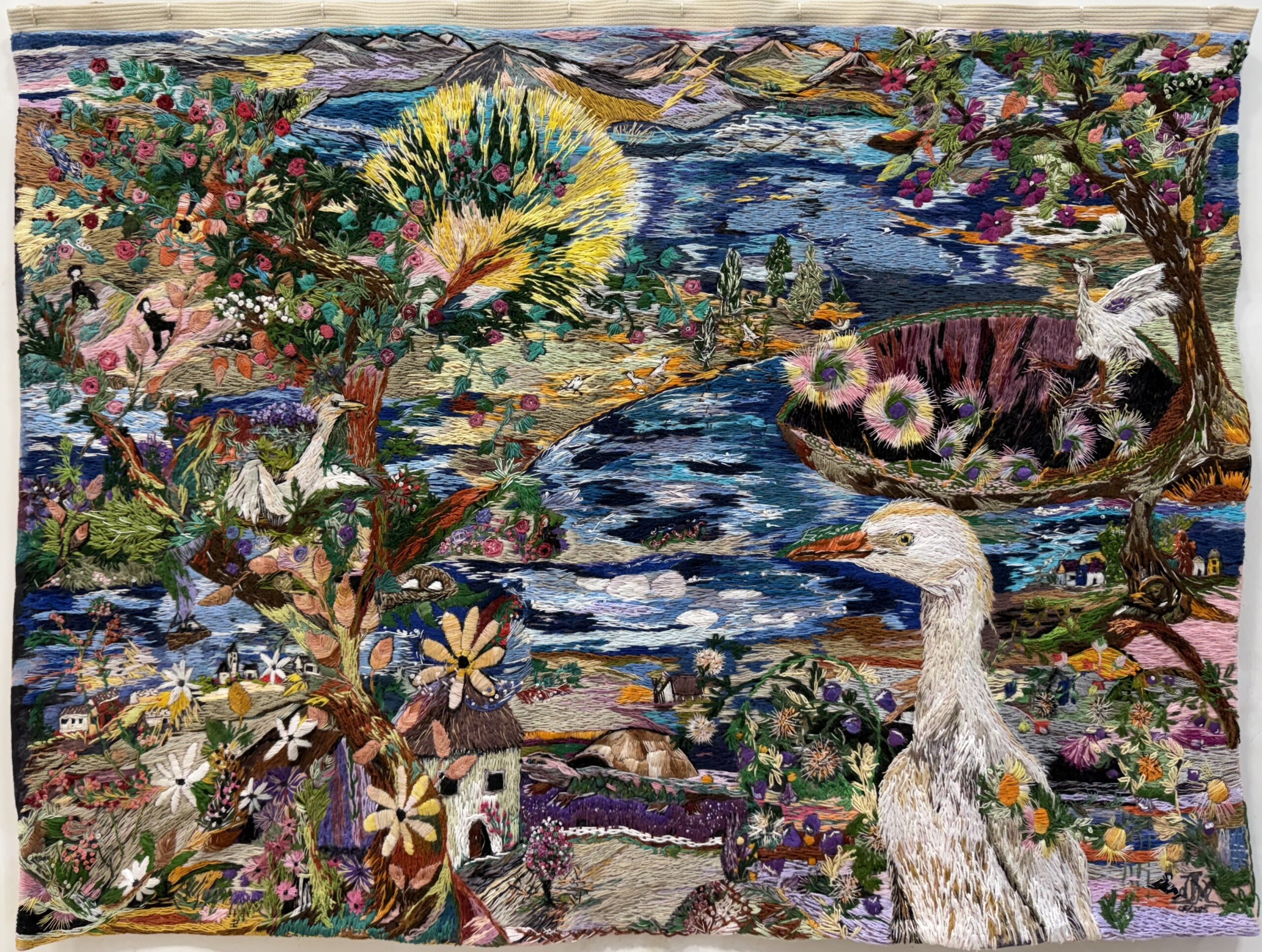 LIZA VANDENOFF (*1958 – Moutier) „Le héron pique-boeufs“ , Stickerei 2025 (Cantonale Berne-Jura Musée des Beaux Arts Moutier). Foto: azw