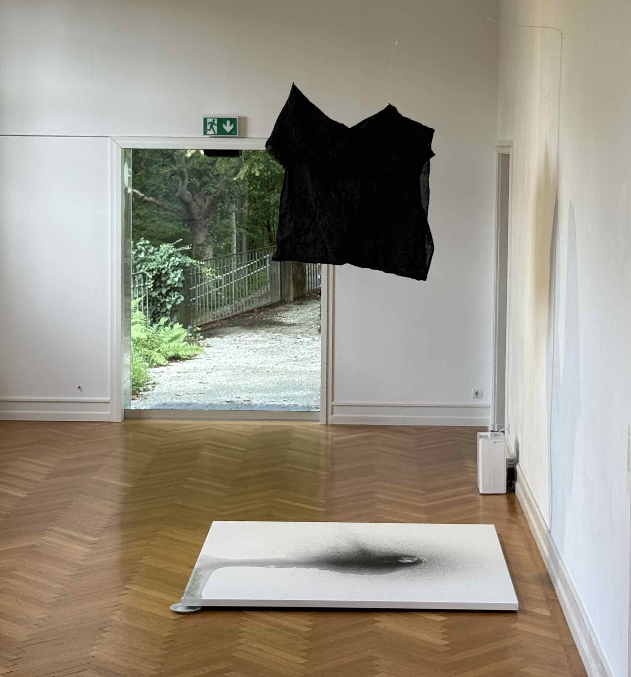Auch GALA PORRAS KIM im Soussol bearbeitet das Thema Kolonialismus und Instituitionskritik, allerdings sehr anders; anteilnehmender. Zum einen entzieht sie dem White Cube I mittels eines Entfeuchters Wasser und lässt dieses durch ein mit Graphit geschwärztes Tuch tropfen, was ein schwärzliches Rinnsal auf dem Boden bewirkt. Damit integriert sie das zurzeit ebenfalls häufig verwendete «Care»-Thema indem sie auf Museumsräume als Architekturkörper hinweist und damit indirekt bereits auf den zweiten, zentralen Ansatz ihres Schaffens: Den Vorwurf, dass die Museen die aus ihrem ursprünglichen Kontext herausgerissenen Artefakte nicht «artgerecht» behandle. Sichtbar macht sie das auf radikale Art und Weise, indem sie eine geschlossene, stets feucht gehaltene Plastik/Holz-Kabine in den White Cube II einbaute, in welcher Artefakte aus den Feuchtgebieten Yucatans ihrer Herkunft entsprechend in Lehm, Schlick etc. bewahrt werden; autonom, denn als Besuchende haben wir keinen Zugang dazu. Bis 23. November