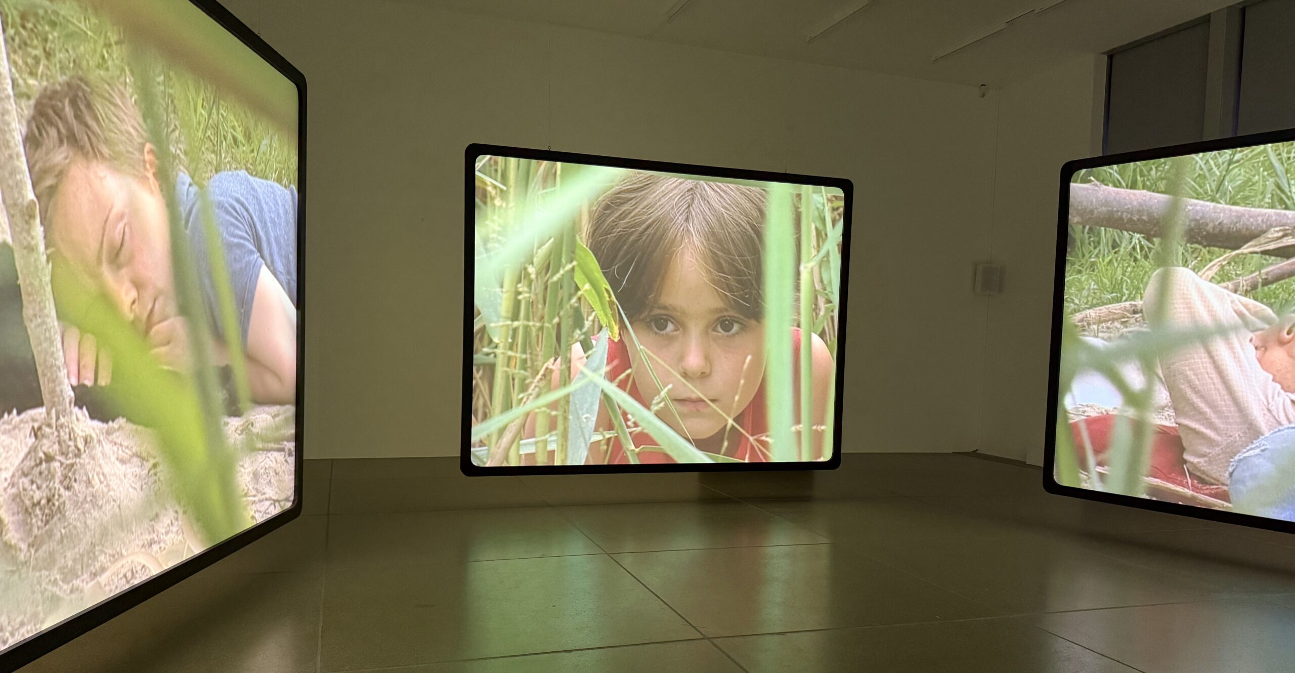 EMMANUELLE ANTILLE „Angels Camp“, Mehrkanal-Videoinstallation, 2003, z.Zt. zu sehen in der A“Mehr Licht – Video in der Kunst“ im Aargauer Kunsthaus in Aarau. Foto : azw